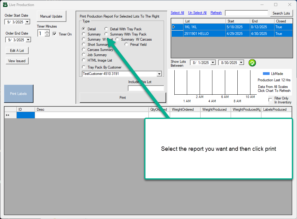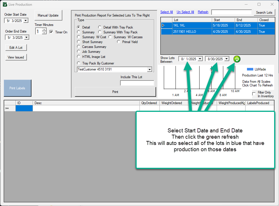 Production Report Between 2 Dates